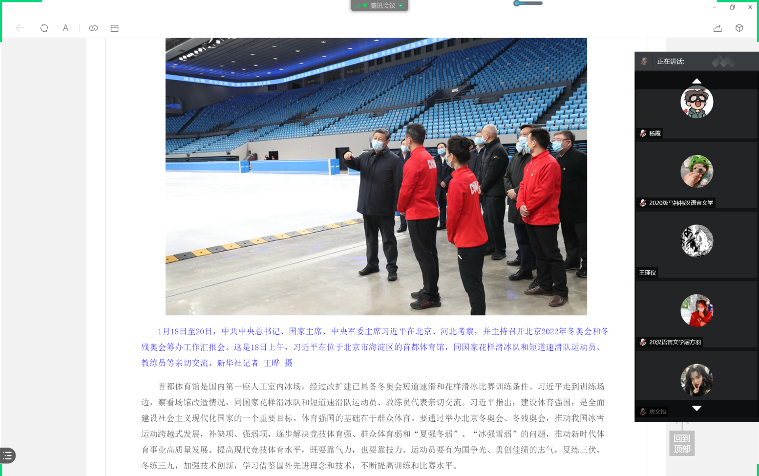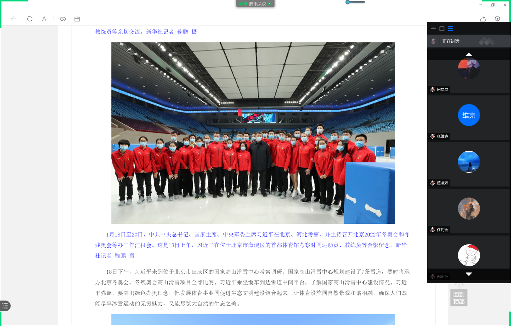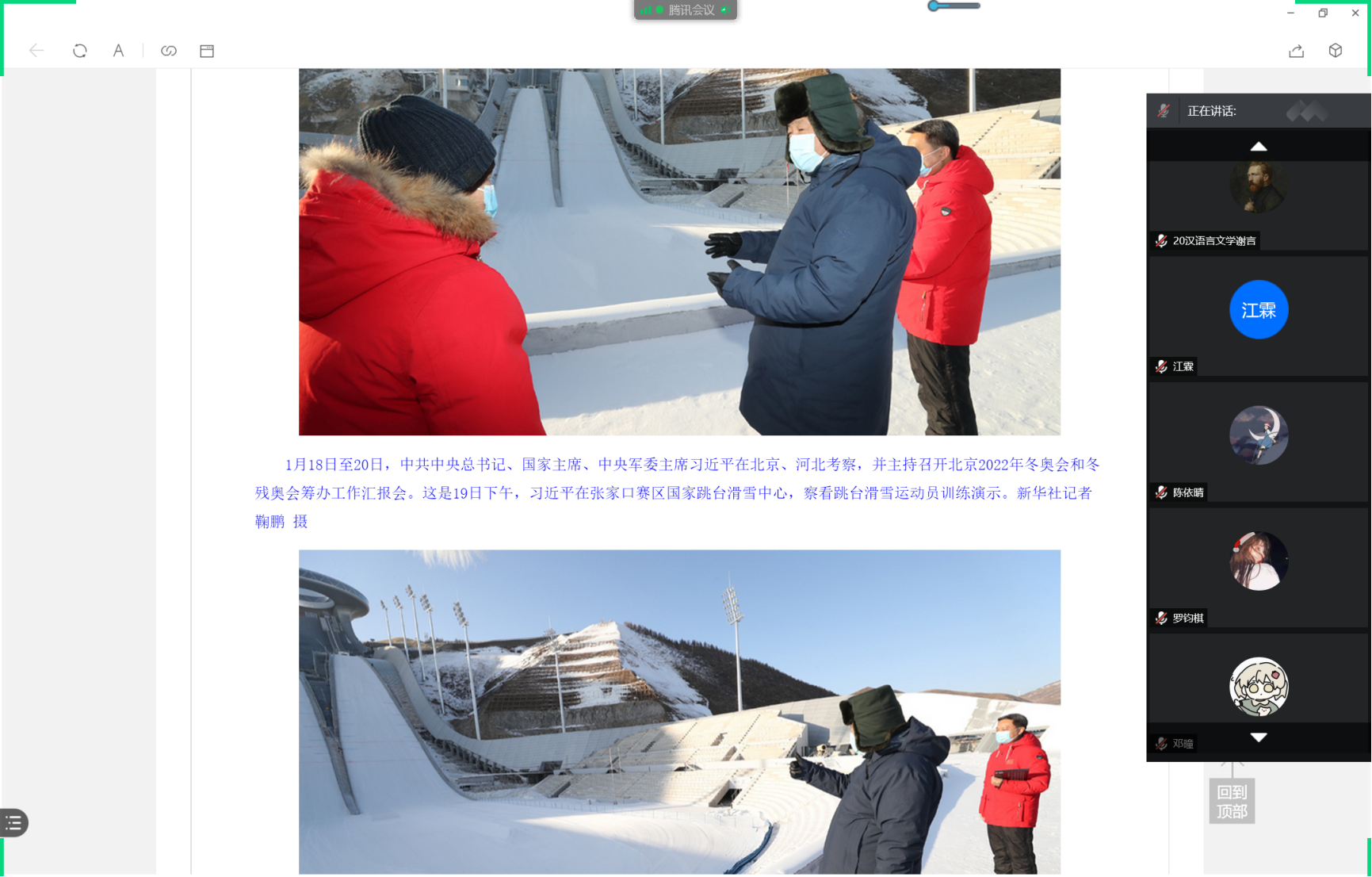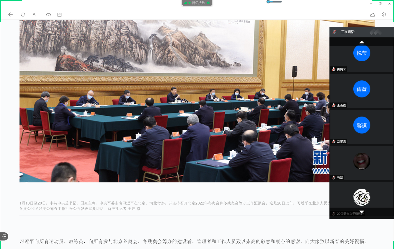 何晶晶:体育不仅仅是一种运动,更是一种文化。冬奥会中承载着的中国元素,是中国文化的象征,更是祖国发展过程中的一个见证。北京举办冬奥会,将带动中国3亿多人参与冰雪运动,这将是对国际奥林匹克运动发展的巨大贡献;北京举办冬奥会,必将起到点燃冰雪运动火炬的作用,推动群众性体育运动,增强人民体质,这也是奥林匹克运动的宗旨;北京举办冬奥会,顺应了中国人民生活水平提高的趋势,是京津冀协同发展的重要展示……新的形式,新的挑战,线上宣讲也让我更懂得了冬奥的细节和申奥的艰苦历程,此次宣讲对答问题互相交流,参与活跃,共同以赤诚之心,助力冬奥!