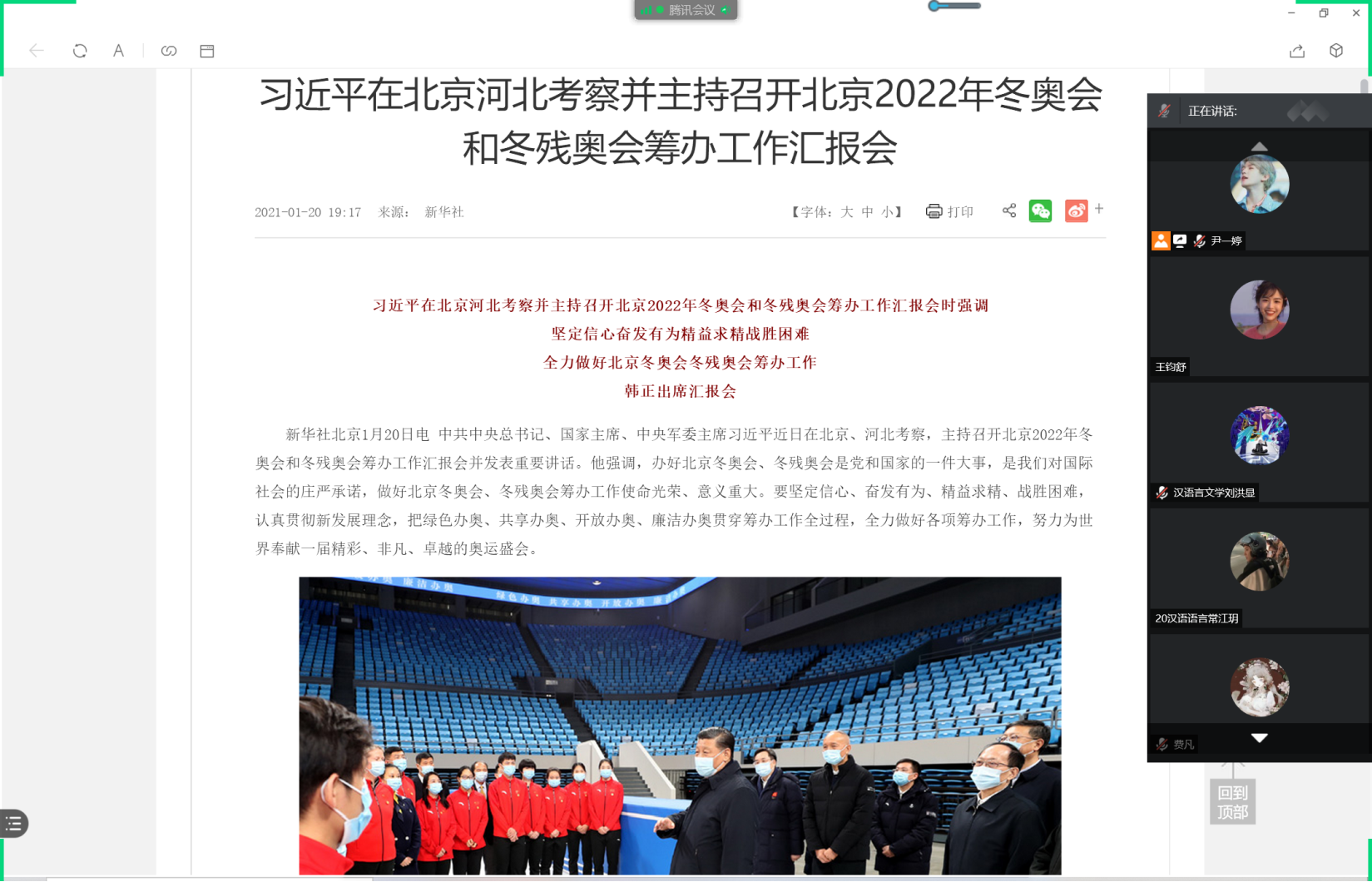 2021年1月24日,永利集团304am官方入口2020级汉语言文学班团支部组织了线上集体学习本次考察及会议重要内容。团支部同学积极参与了此次会议,学习过程有序、认真。学习会议结束后,同学们还纷纷对本次学习内容写下了自己的感想。
